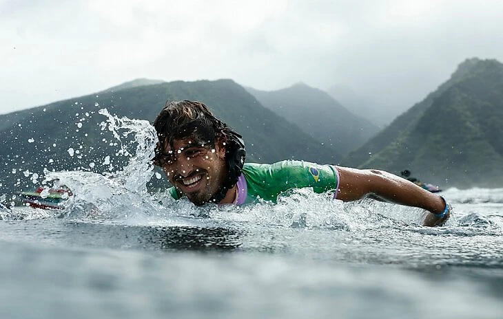 Бразильцы всерьез настроены на медали. Но и о главном в серфинге не забывают – кайфовать. Например, как Жуан Чианка.
