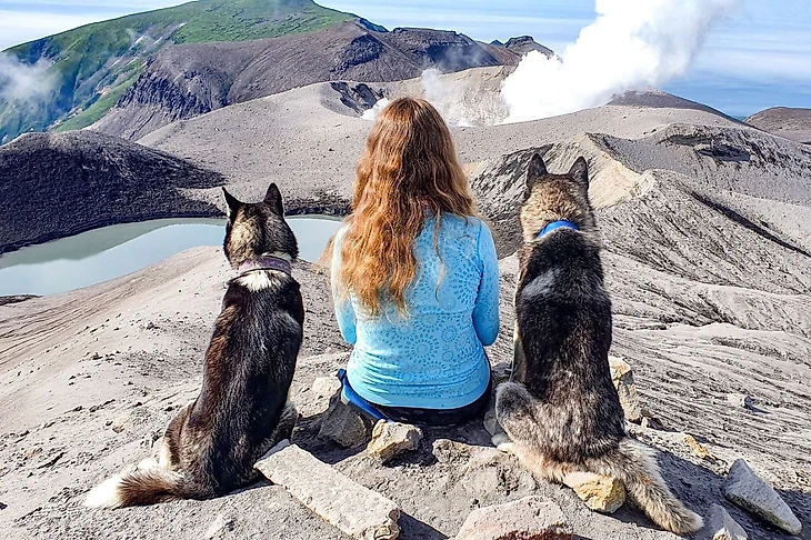 − Когда я была в Северо-Курильске, в день приезда мне с погодой повезло. Мы и к океану сходили, и солнышко выглядывало, и Эбеко себя показал, причем не один раз, хотя я там была буквально несколько дней. У меня была немного иная ситуация − я приезжала в гости. Но если бы я ехала с туристической целью, с большой вероятностью остановила бы выбор именно на вас, потому что в вашу команду входят две собаки хаски. На меня бы это подействовало безотказно.