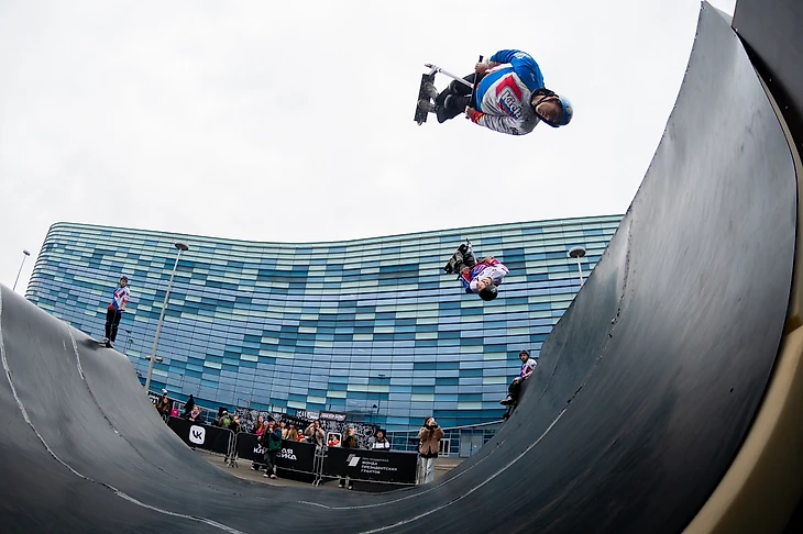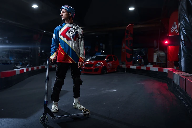 — Именно там я познакомился с ребятами, которые уже давно и хорошо катались на самокатах, — продолжает спортсмен. — Они мне во всем помогали. Мы снимали выполнение своих трюков на камеру, а потом рассматривали, чего не хватает — скорости, высоты или кручения. И дорабатывали!