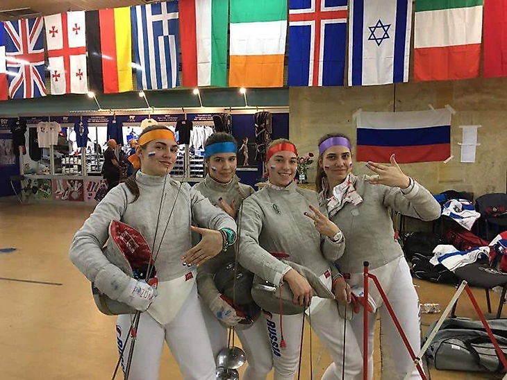 Если вы досмотрели ролик до конца, то вот интересная деталь из серии "Совпадение? Не думаю." 8-го марта, юниорская женская сборная России по сабле взяла золото на чемпионте Европы в Пловдиве. Вот как они выходили на дорожку, а после на церемонию награждения.