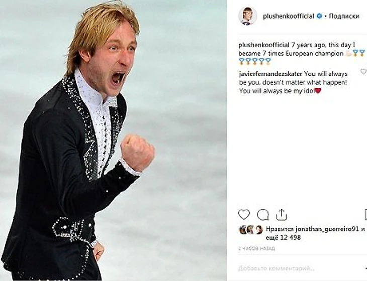 Плющенко опубликовал пост в инстаграме с подписью о том, что в этот день семь лет назад он стал семикратным чемпионом Европы.