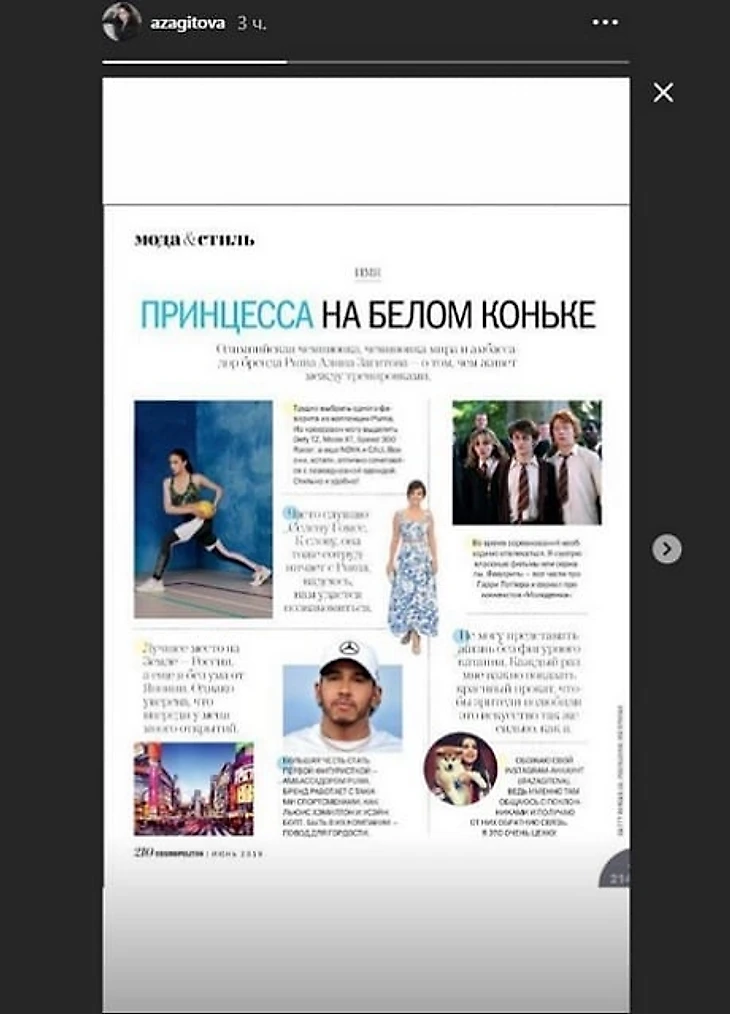 «Обожаю свой инстаграм-аккаунт, ведь именно там общаюсь с поклонниками и получаю от них обратную связь. Я это очень ценю», – сказала Загитова в интервью журналу Cosmopolitan.