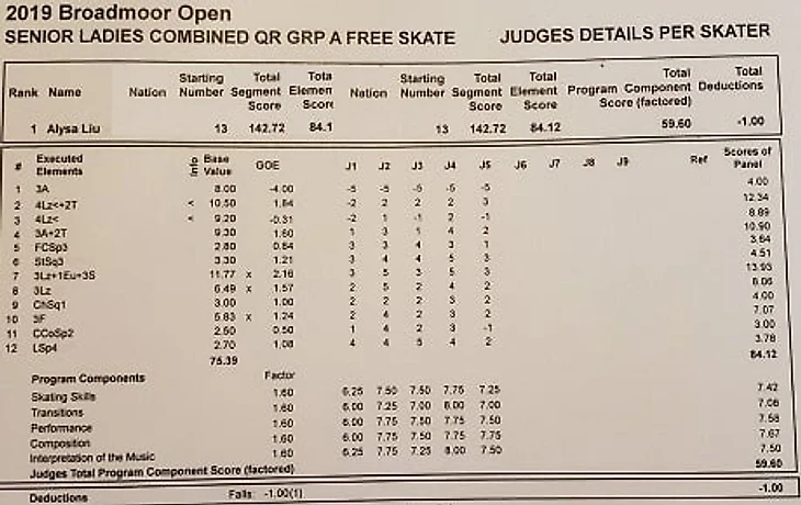 13-летняя американская фигуристка Алиса Лью вчера на турнире Broadmoor Open в США в произвольной программе неудачно исполнила два четверных лутца и два тройных акселя.