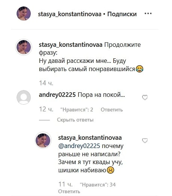 «Пора на покой…» – написал подписчик Константиновой в инстаграме.