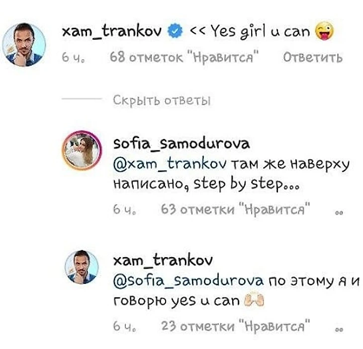 «<< Yes, girl, u can», – написал Траньков в комментариях.