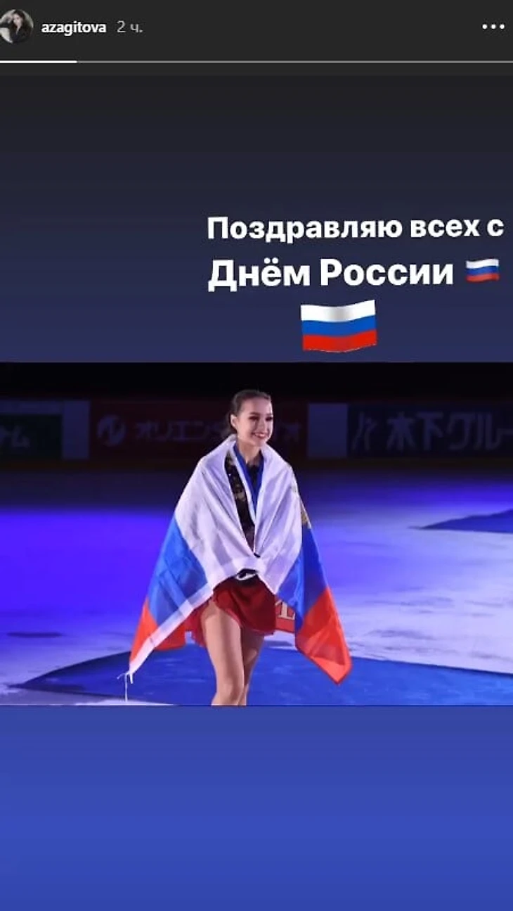 Олимпийская чемпионка по фигурному катанию Алина Загитова опубликовала поздравление с Днем России.