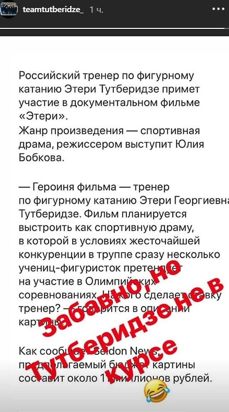 «Забавно, но Тутберидзе не в курсе 😂», – сообщили в инстаграме Team Tutberidze.
