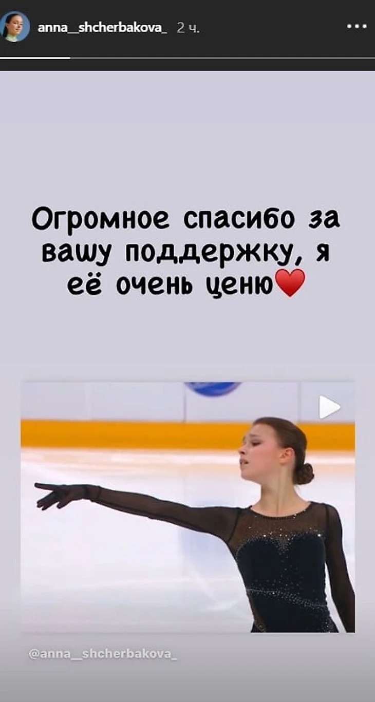 «Огромное спасибо за поддержку, я ее очень ценю». Щербакова поблагодарила болельщиков
