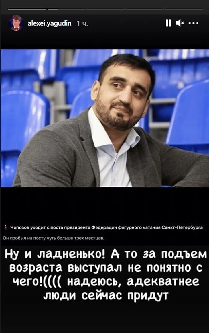 Ягудин об уходе Чопозова с поста главы Федерации фигурного катания Санкт-Петербурга: «Надеюсь, придут люди адекватнее»