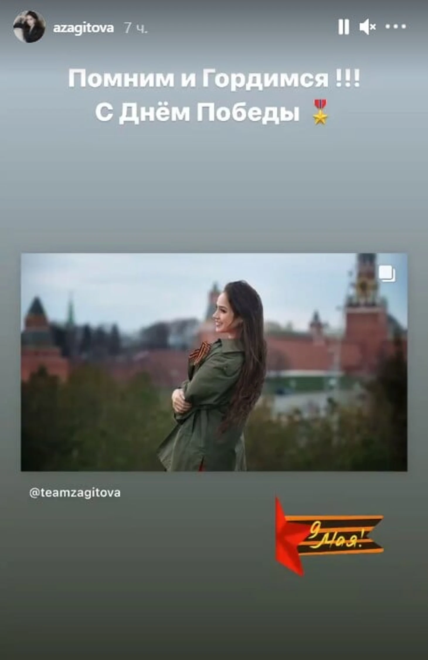 Алина Загитова: «Помним и гордимся! С Днем Победы»