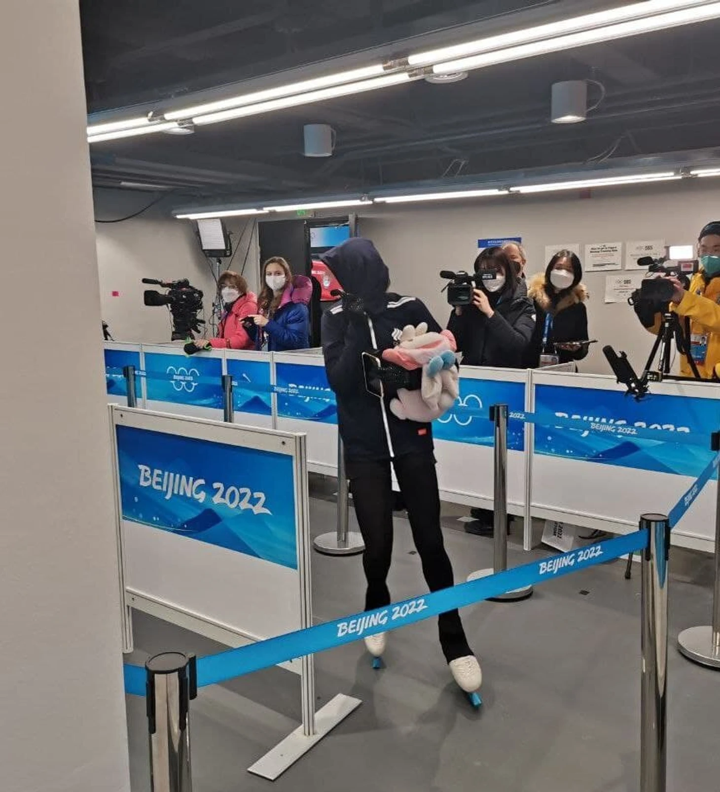 Валиева покидала тренировку на Олимпиаде в Пекине, закрыв лицо кофтой. В микст-зоне журналист Daily Mail спросил ее о допинге
