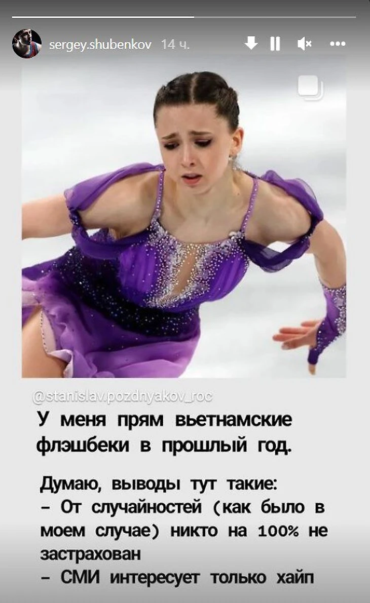 Шубенков о ситуации с Валиевой: «У меня вьетнамские флэшбэки в прошлый год. От случайностей, как было в моем случае, никто на 100% не застрахован»
