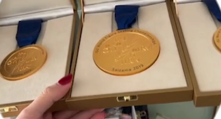 «Мои хорошенькие тут лежат». Загитова показала медали с чемпионата мира 2019 года