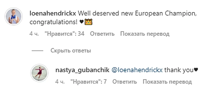 «Заслуженная новая чемпионка Европы». Хендрикс поздравила Губанову с победой