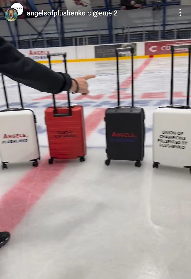 Смотрите, какой подошел мерч – наши эксклюзивные чемоданы для коньков», – рассказал Плющенко.