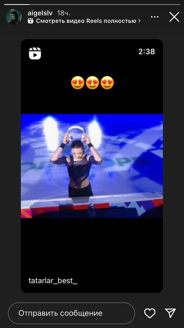 Солистка группы «Аигел» репостнула видео с номером Валиевой: «😍😍😍»