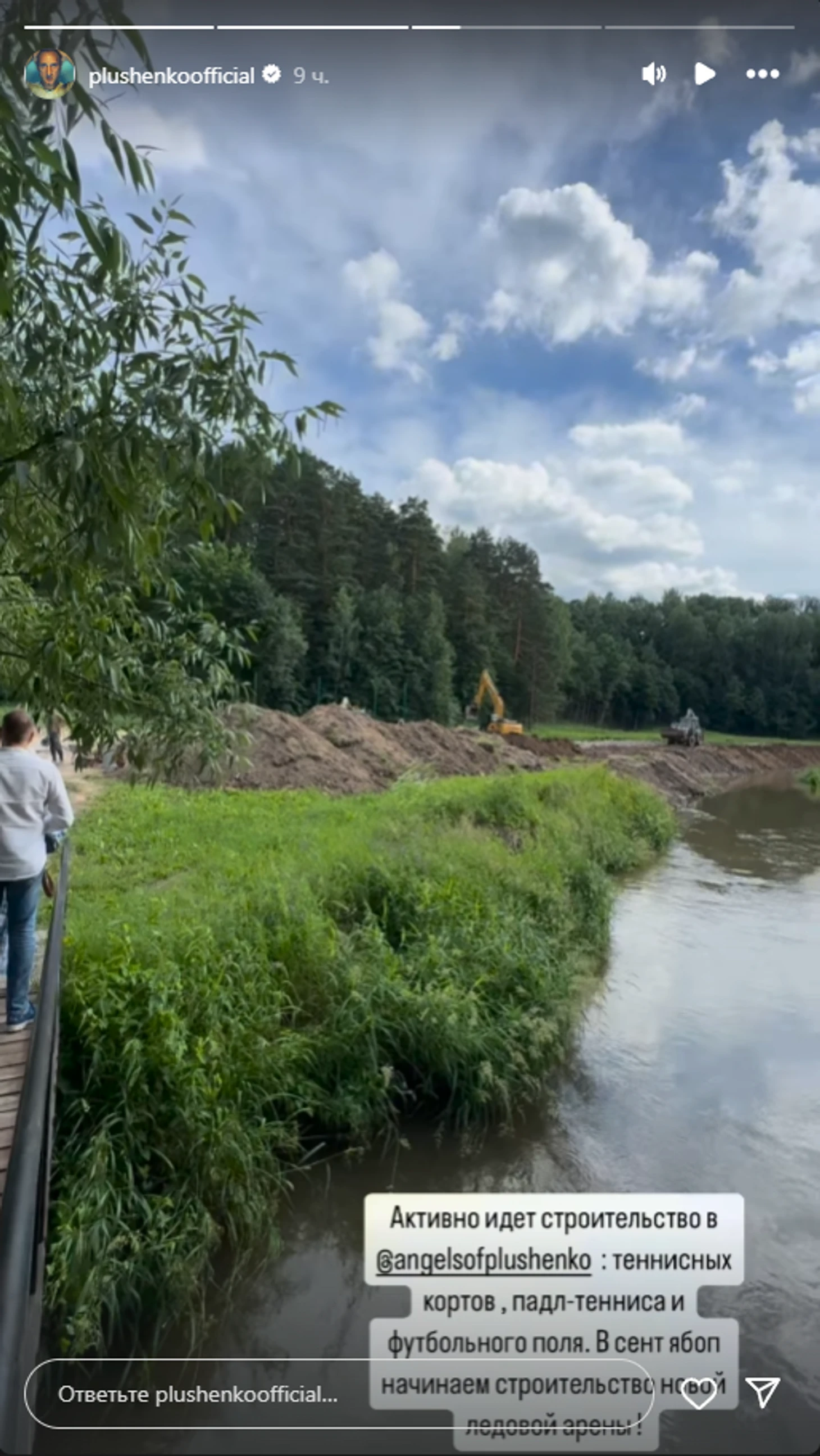 «Активно идет строительство в «Ангелах Плющенко» теннисных кортов, падел-тенниса и футбольного поля. В сентябре начинаем строительство новой ледовой арены!» – добавил он.