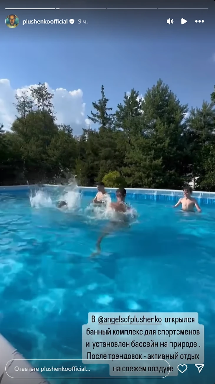 «В «Ангелах Плющенко» открылся банный комплекс для спортсменов и установлен бассейн на природе. После тренировок – активный отдых на свежем воздухе», – написал в сторис двукратный олимпийский чемпион.