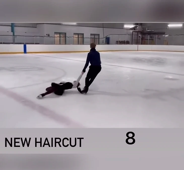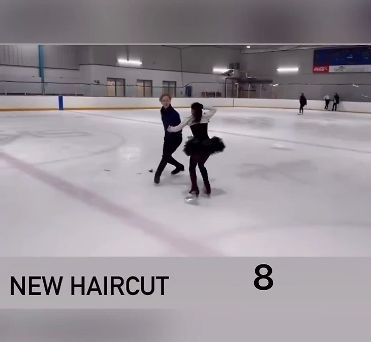 Дэвис и Смолкин поделились нарезкой неудачных моментов с тренировок. На одном из видео Глеб отрезал лезвием конька часть волос Дианы