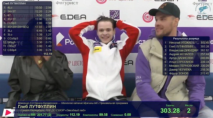 Фигурист Глеб Лутфуллин выругался, увидев проигрыш 0,17 балла.