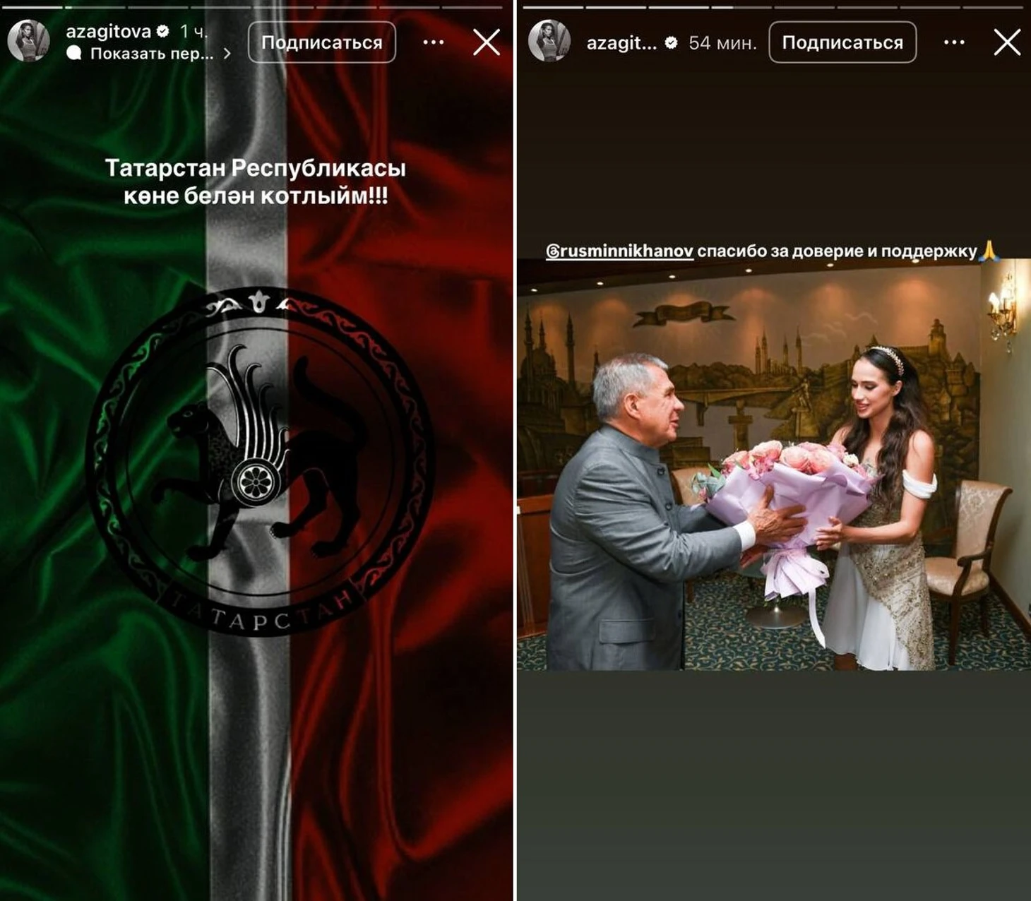 Алина Загитова выложила поздравление с Днем Республики Татарстан.