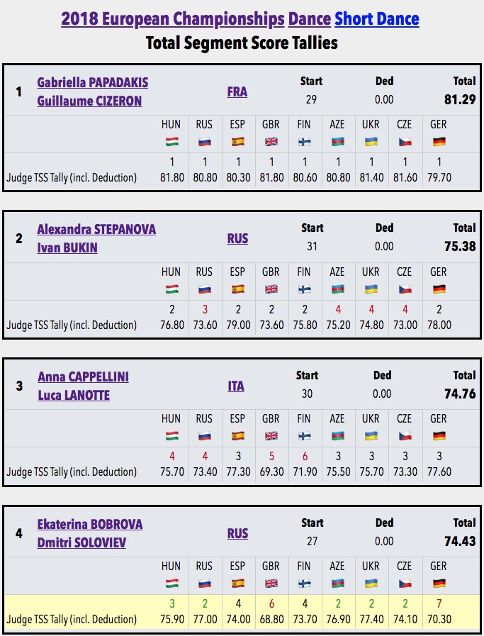 В успехе Габриэлы Пападакис и Гийома Сизерона сомнений не было – они реально на голову сильнее любого европейского дуэта. Они и выиграли короткий танец, набрав 81.29 (42.20+39.09) даже с твизлами третьего уровня.