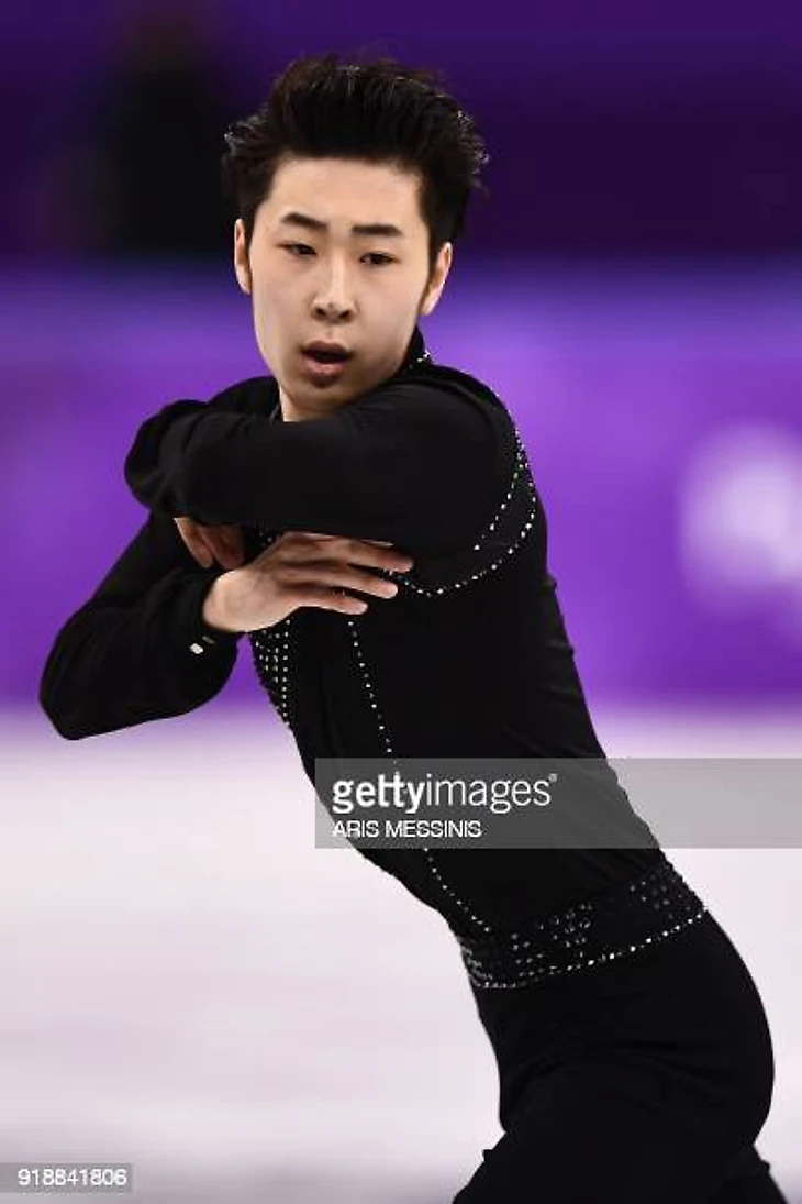 Винсент Чжоу начал с каскада 4Л+3Т. Неверное ребро на лутце судьи проигнорировали, на тулупе недокрут. Плохой выезд с 4Ф и корявенький 3А. Но наскребли ему 84.53 (48.50+36.03), 12-й.