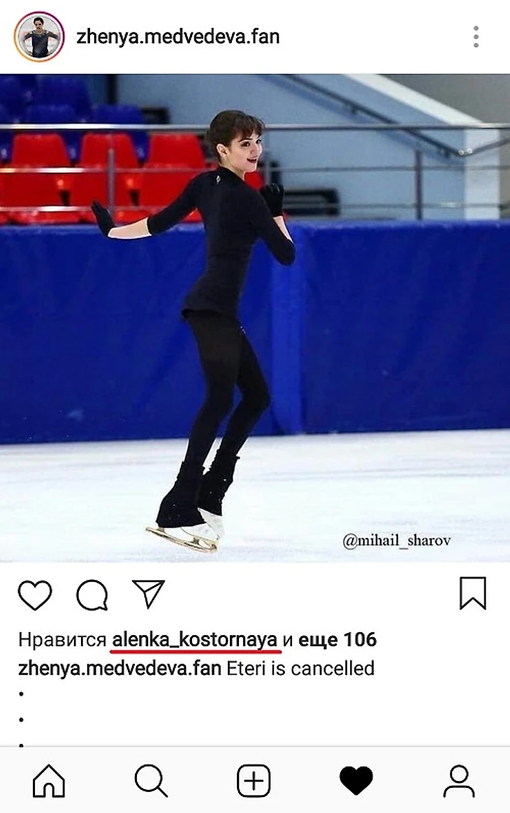 Фан-аккаунт Медведевой оскорбил Тутберидзе. Алёна Косторная лайкнула