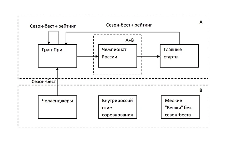Взрослые фигуристки, не имеющие этапов Гран-При, находятся в сложной ситуации, поскольку авторитетом никаким не обладают и являются глубоко запасными (статус - ноунейм). Чтобы авторитет набирать, нужно быть в зоне "А" (см. нижепредставленную блок-схему).