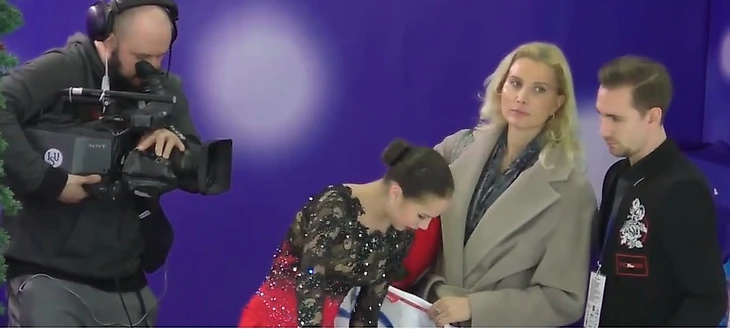 Этери Тутберидзе с любовью и грустью смотрит на свою любимую ученицу на Чемпионате России, когда ловит взгляд Жени Медведевой на себе.