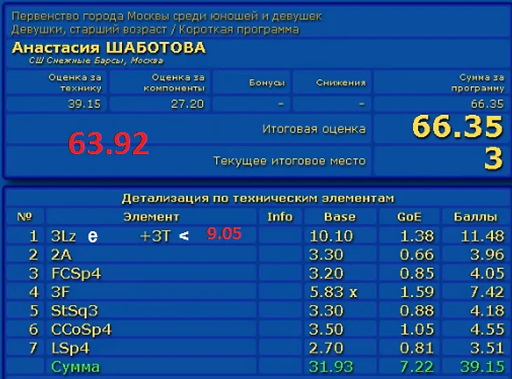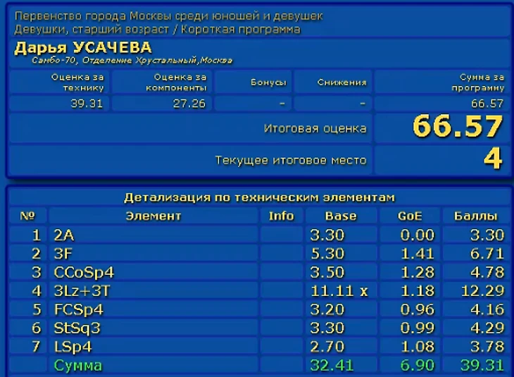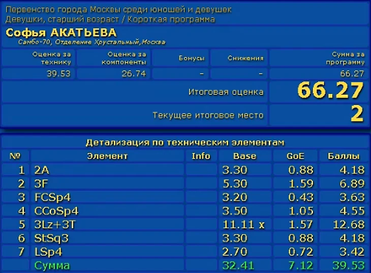 Вероника Жилина хоть и завалила ПП, но отрыв почти в 20 баллов позволил ей занять первое место.