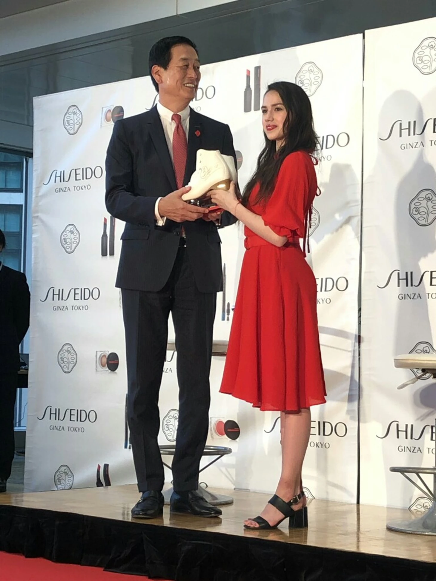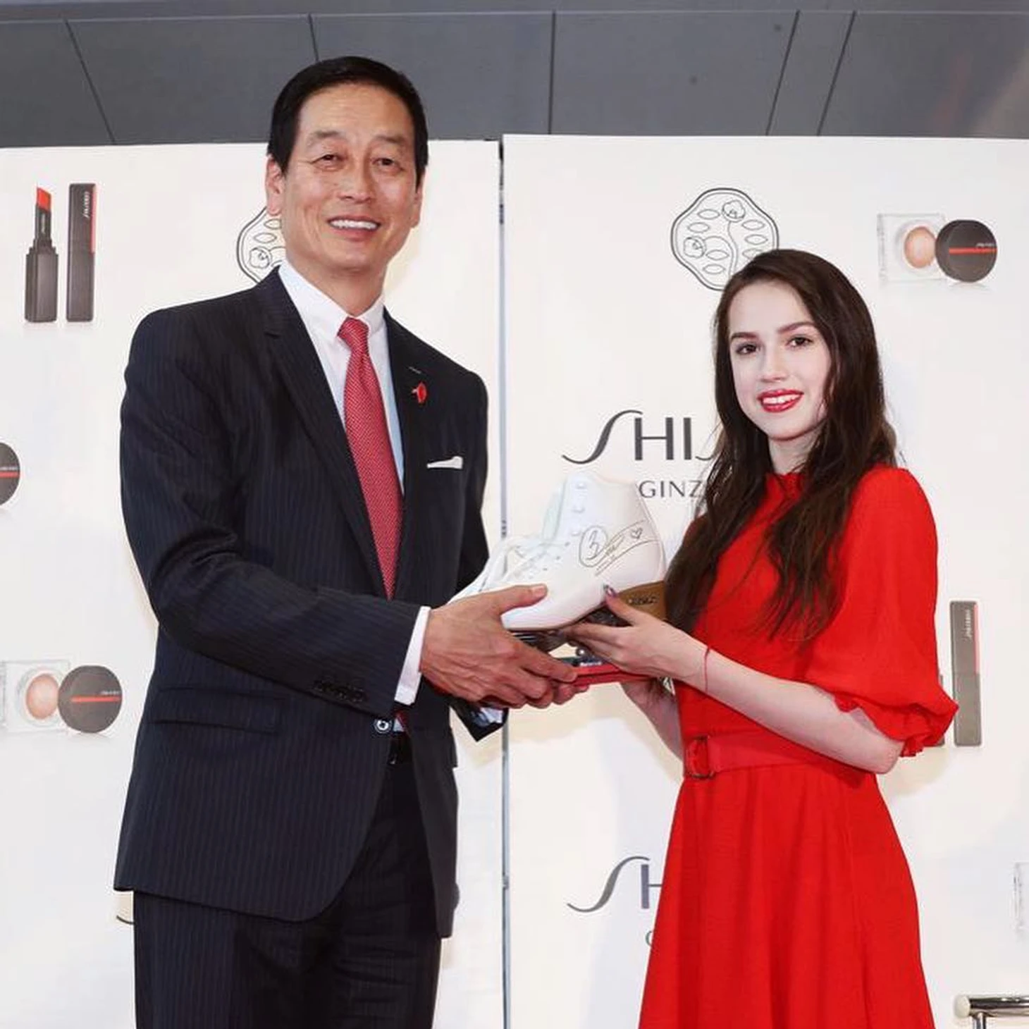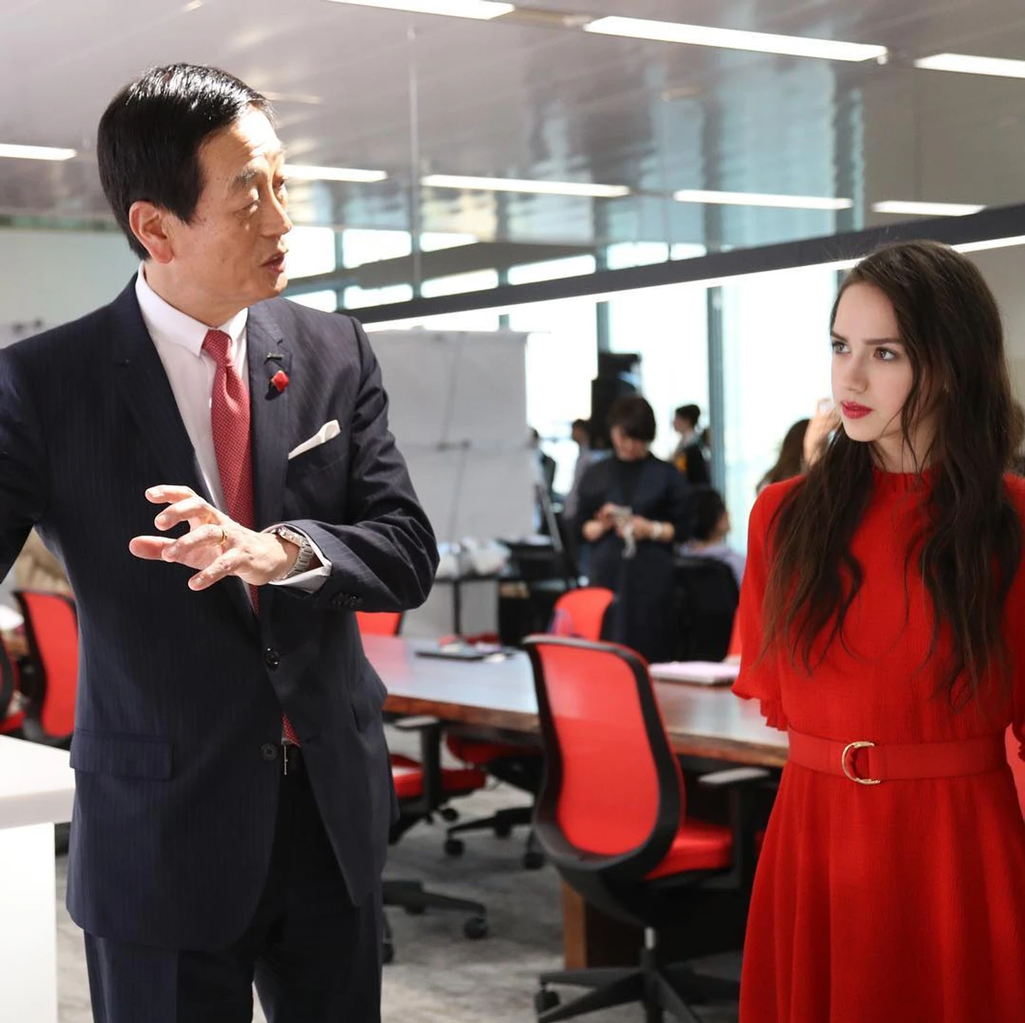 Глобальный посол компании Shiseido Алина Загитова впервые посетила головной офис компании в Токио и была встречена президентом компании Масахико Уотани. Алина подарила им коньки с автографом и поблагодарила за поддержку.