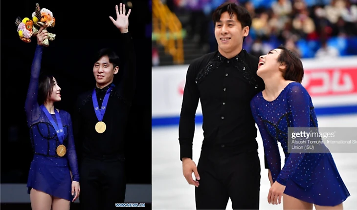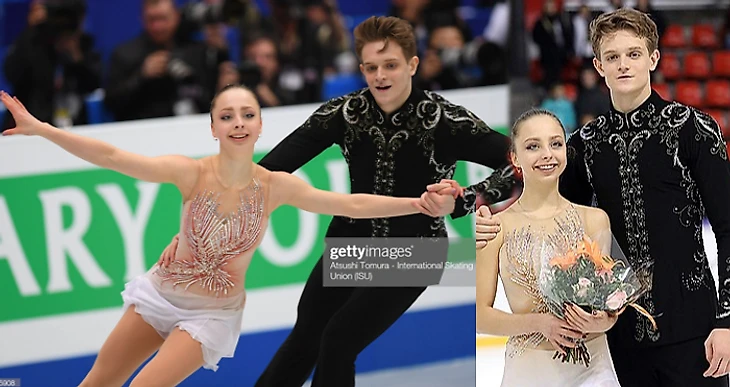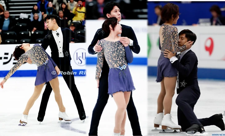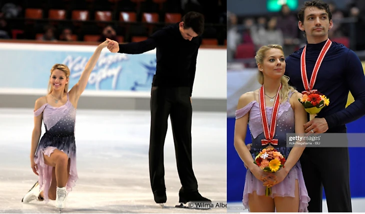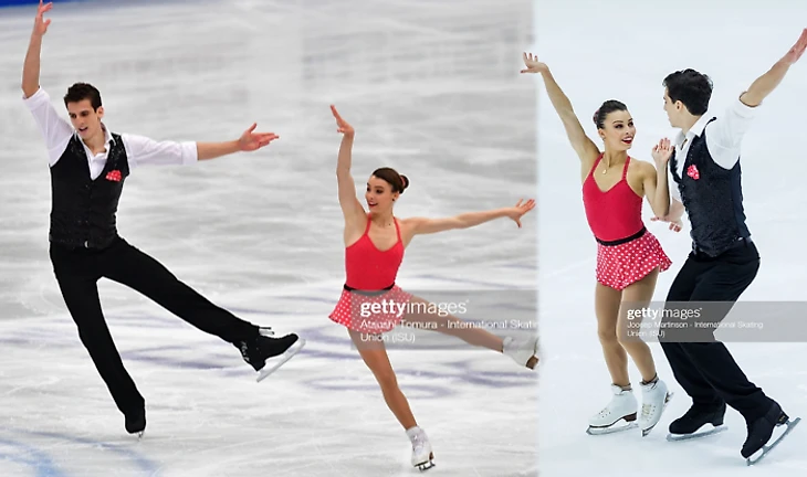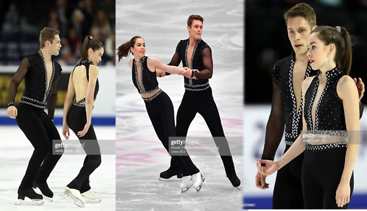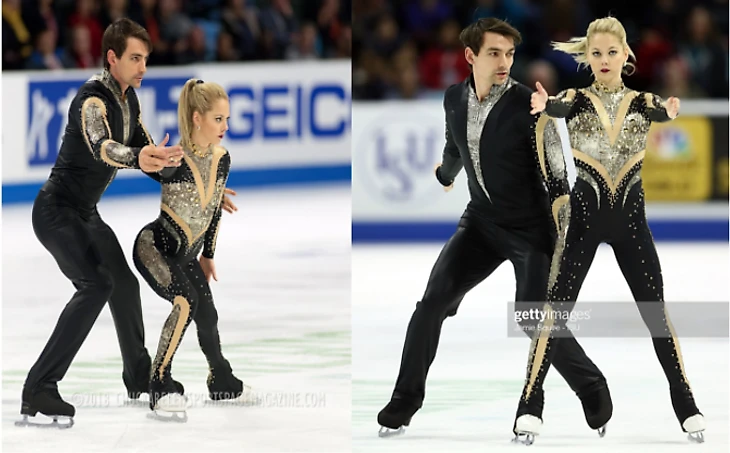 Практически постоянные участники модного рейтинга и даже его неоднократные призеры сперва шокировали своими футуристическими костюмами к короткой программе. Оказалось, есть вещи, которые способны испортить даже Алексу. Потом одумались и порадовали вот этим стильным и красивым комплектом. Отделки достаточно много, но сделано все со вкусом. Костюмы опять же выполнены в одной стилистике, сочетаются между собой. У Криса очень красиво оформлен ворот. А платье Алексы отличный пример как горячо может выглядеть маленькое черное платье, даже не слишком открытое. Топ подчеркнул линию плеч, а трапециевидная юбка с двумя разрезами выгодно выделяется на фоне юбочек полусолнц.