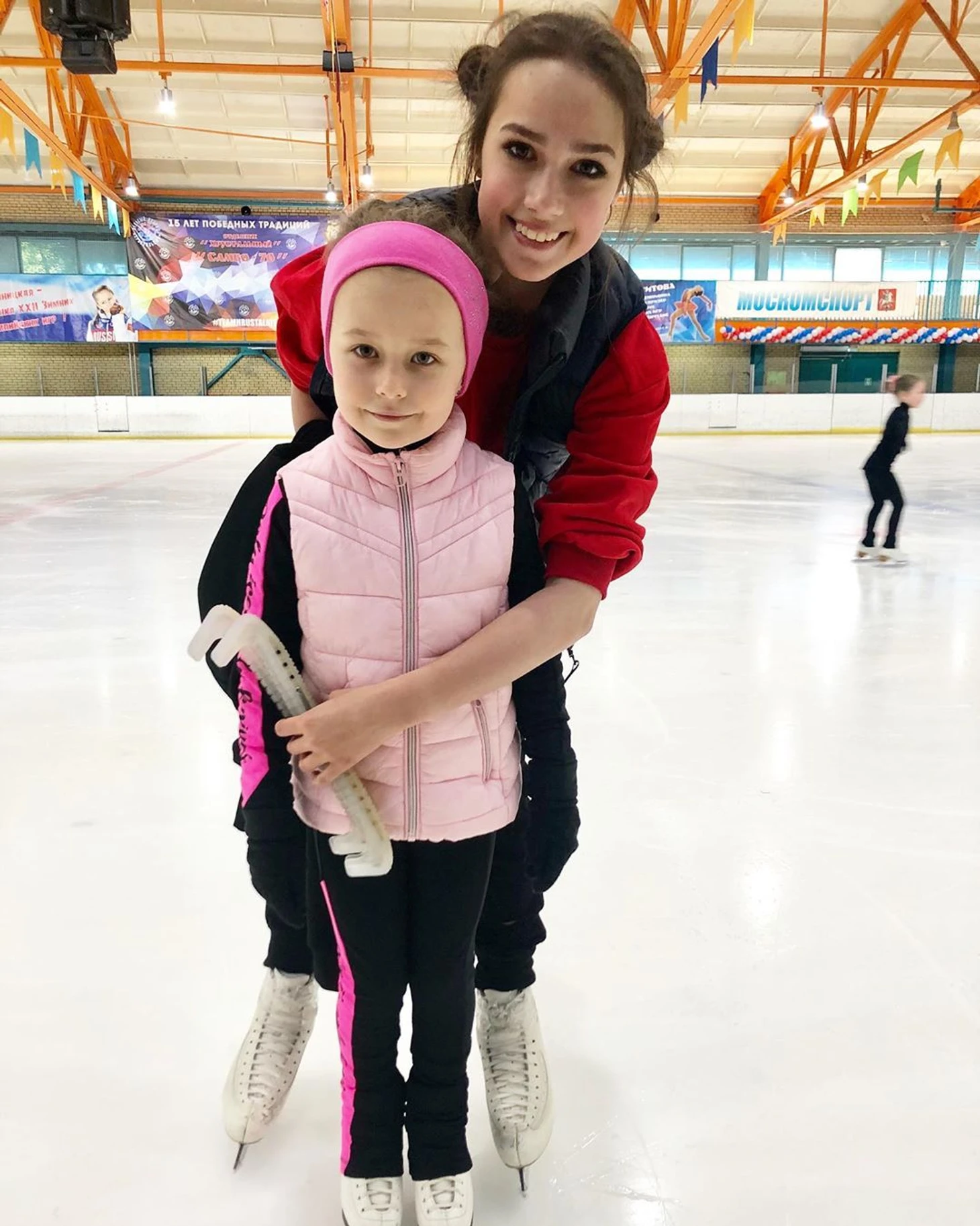 @viktoriakostjuk: ⛸😍 Ради этой фотографии, пожалуй, стоило встать в 6.30 утра🙈 😅 Олимпийская чемпионка 2018 г в одиночном катании, чемпионка мира 2019 г, чемпионка Европы 2018 г, серебряный призёр чемпионата Европы 2019 года рядом с нашими детьми. Любим Алину и бесконечно восхищаемся ее упорством, трудолюбием и мастерством))))
