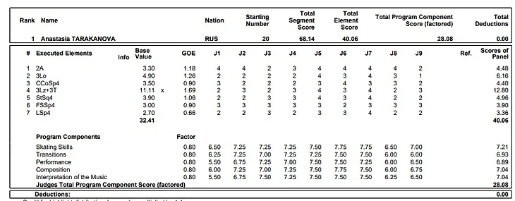 Прокат российской фигуристки судьи оценили на 68,14 балла. Этот результат стал лучшим в карьере Анастасии в коротких прокатах.