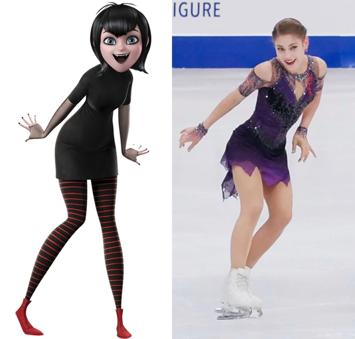 В произвольной Алёна совсем другая. На открытых прокатах, как по мне, вообще не было неудачных программ, но "вау-эффект" был больше всего именно от этой ПП. По крайней мере лично я увидел то, на что рассчитывал. Позже я нашёл ответ, что именно в этой программе интересного. Это микс из трёх разных тем, каждая из которых отличается друг от друга: первая - под фортепиано достаточно классическая, вторая - привычно-лиричная и третья - на контрасте... Алёна хотела что-то более агрессивное, но вампирчик получился скорее озорным.