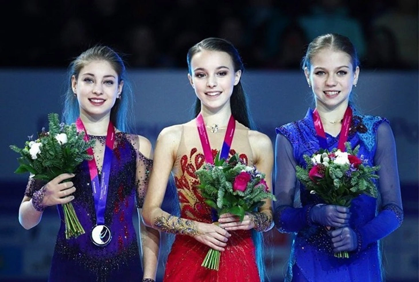 Хочу обратить внимание, что вся троица призёров уже весьма популярна в народе. И когда Женя Медведева снялась, заготовленные для неё игрушки распределились между призёрами и Лизой. А также благодаря первой четвёрке женский турнир отмечен попытками исполнения пяти тройных акселей, трёх четверных тулупов, трёх четверных лутцев и двух четверных флипов. И большая часть элементов была сделана успешно, а значит, это намного круче, чем прошлогодние ноль 3А, два 4Л и один упаденный 4Т.