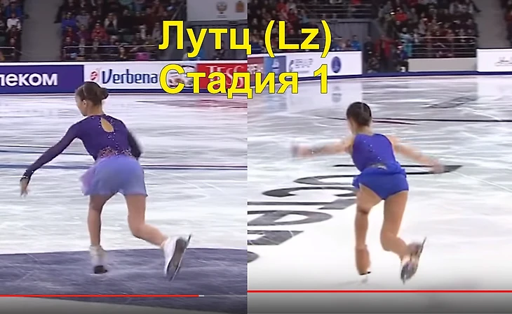 Так как никто не хочет делать скриншоты тройных лутцев Ани Щербаковой в момент касания зубца, как принято во всех техбуках по определению лутца, пришлось самому.