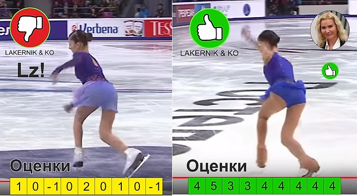 Почему выбрал именно эту пару? Да все просто. Они прыгают абсолютно одинаковые лутцы, но получают диаметрально противоположные оценки. Для сравнения были взяты лутцы с чемпионата России. Самого честного турнира на земле с главным рефери Святославом Бабенко, дважды дисквалифицированным ISU за манипуляции при выставлении оценок. Ну а чтоб турнир был еще честнее Лакерник лично приехал контролировать и участвовать в судействе.