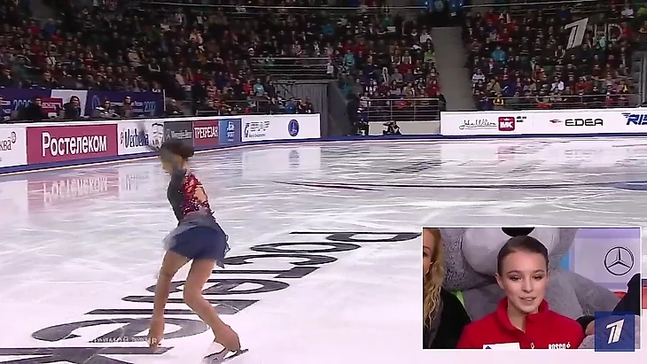 Положение в воздухе простое. Никаких риппонов и прочих усложнений.Опять же все идентично. А что докрутом? Тут все хорошо. Прыжки докручены и это не должно влиять никак на оценки. Причем у Фроловой прям четко на выезд.