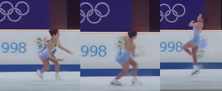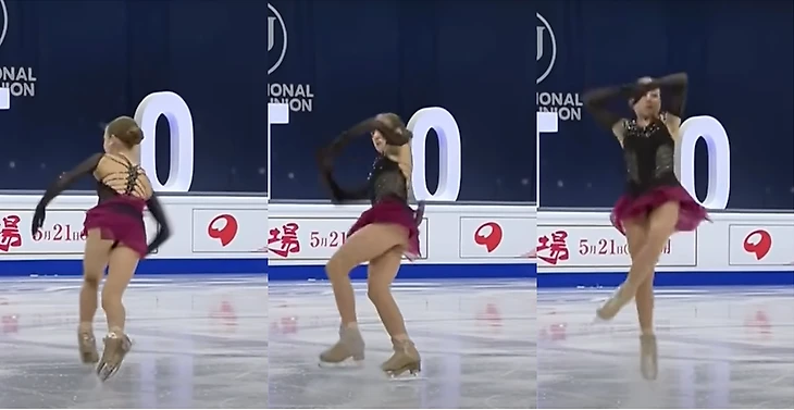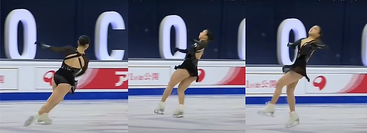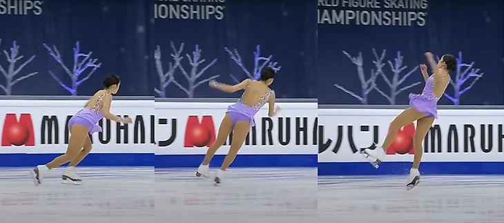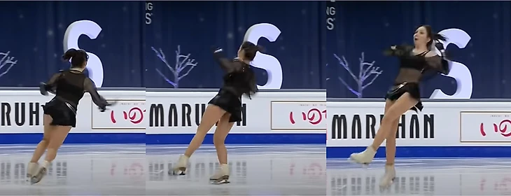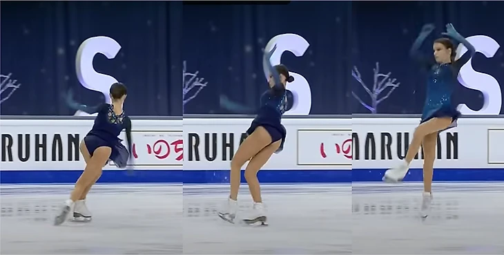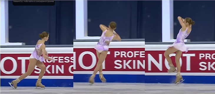 У Щербаковой есть еще и флип в четыре оборота. На ЧМ было падение, я взял заход с удачного флипа на КР. Рядом флип Трусовой, по-моему принципиально не отличаются в плане преров.