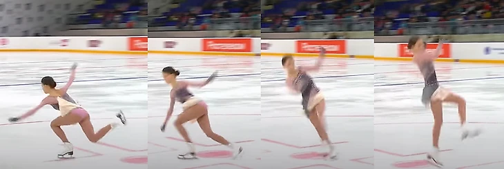 Саша прыгала и тройной "флип" и четверной. Начнем с флипа в четыре оборота.