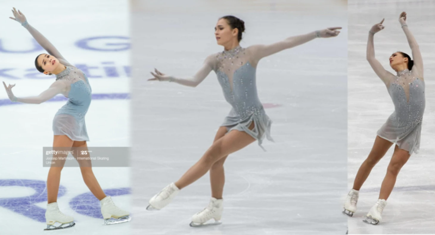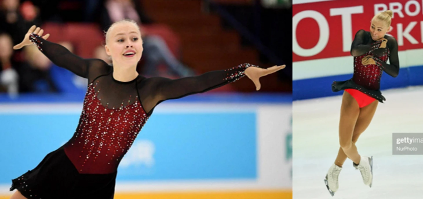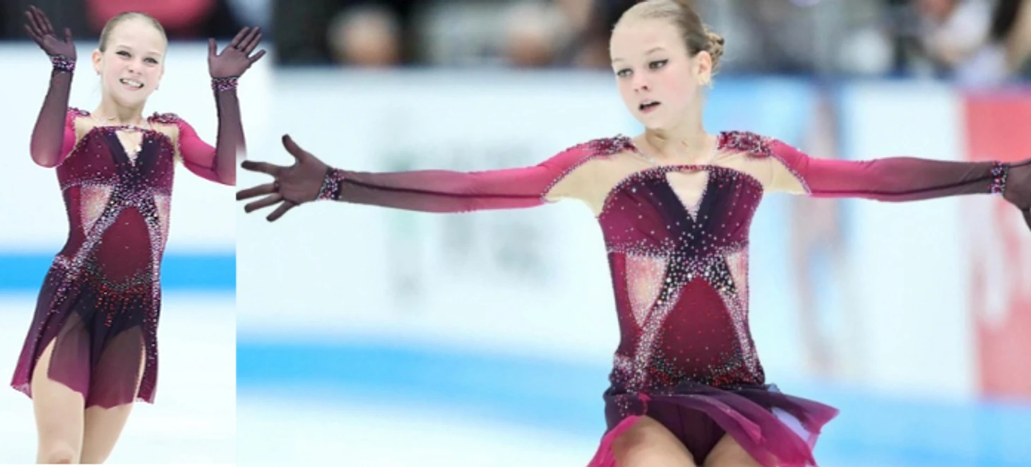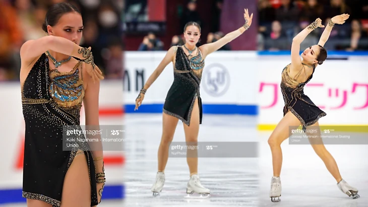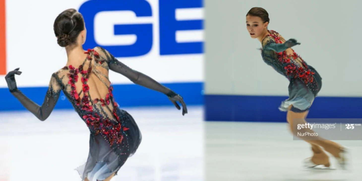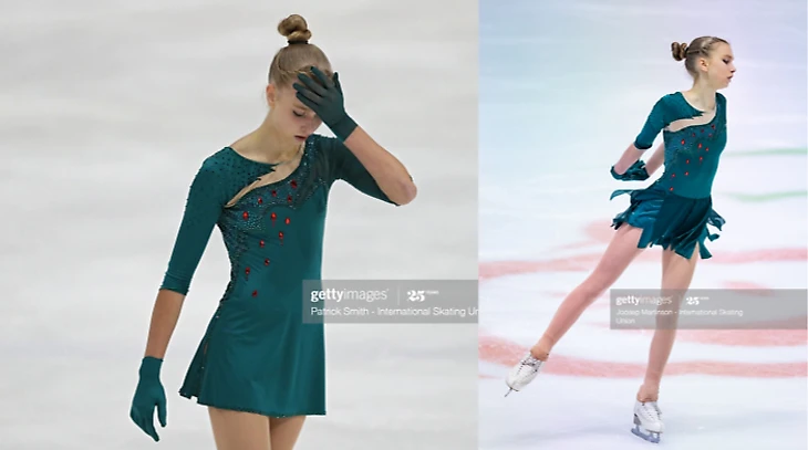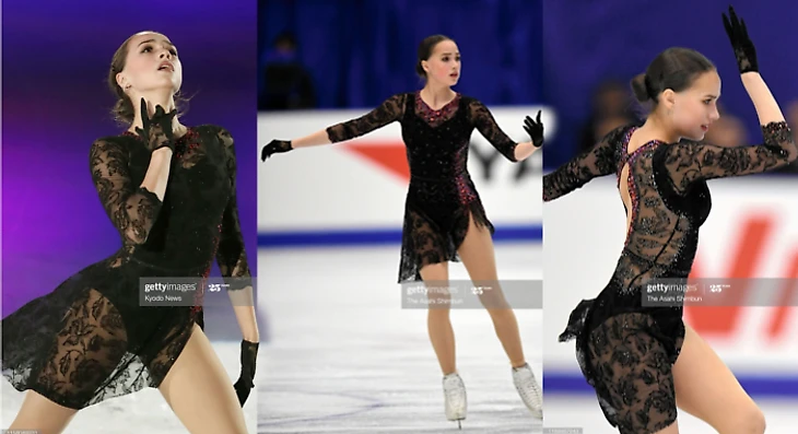 Саша Трусова хорошо, что сменила платье. Это, красное, ей не идет по фасону - плечи и так квадратные, накачаные.