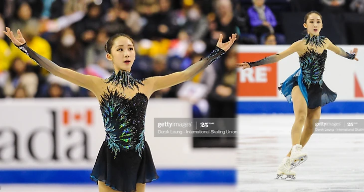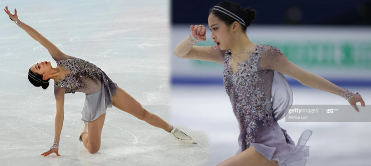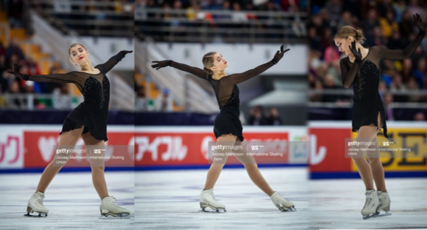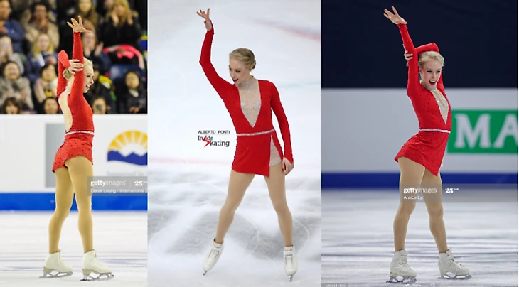 Но победу в модном рейтинге ей принесло платье для короткой программы. Первой кп, от которой затем, к сожалению, отказались. Видела несколько раз, но то платье запало мне в душу. Потому что оно нереально крутое!