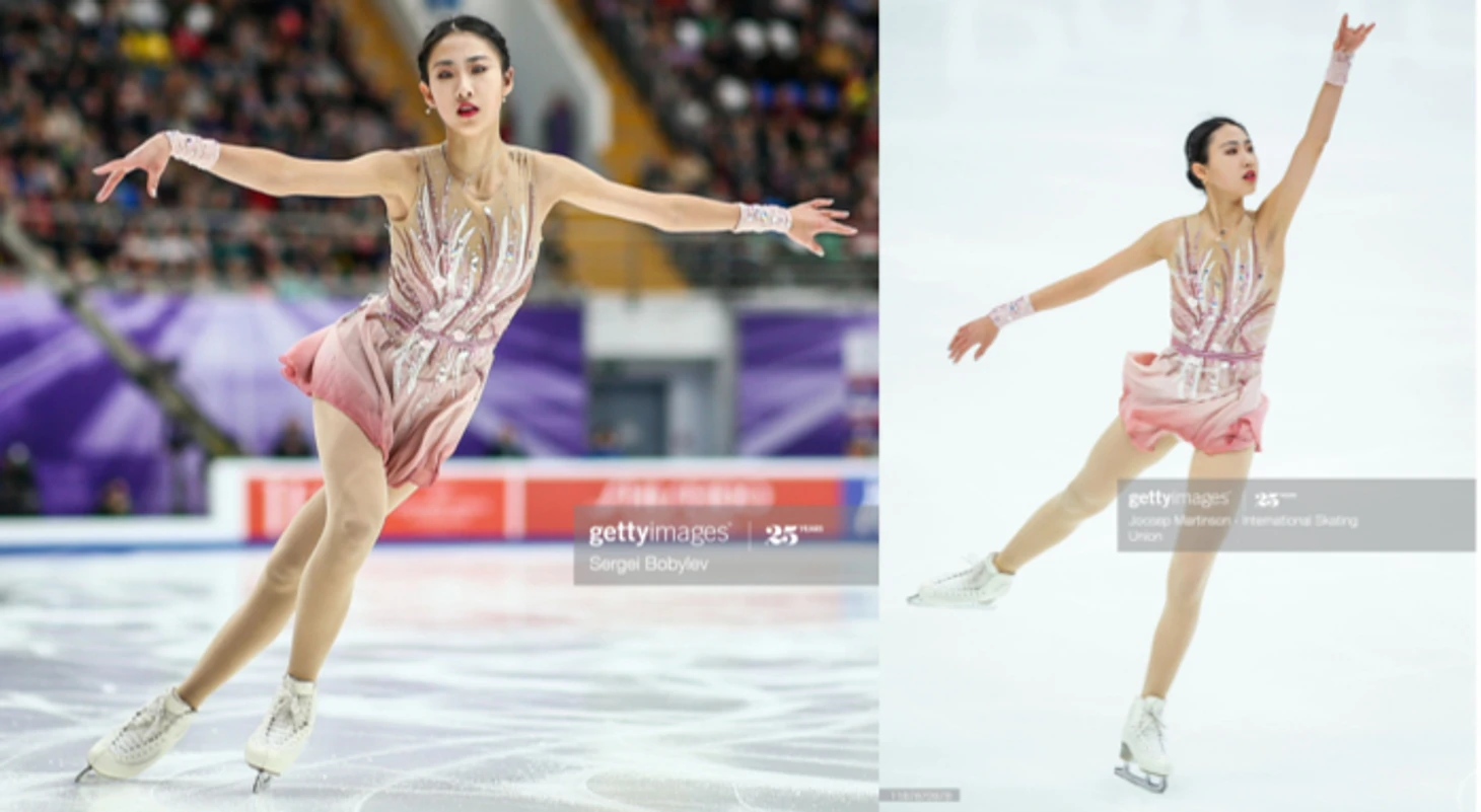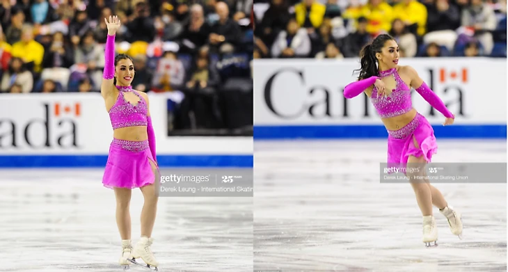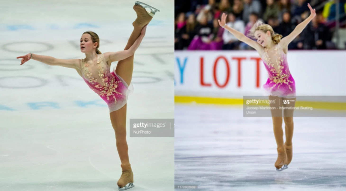 Соня Самодурова в розовом с жуткой розочкой еще раз доказывает, что не весь фешон надо тащить на лед.