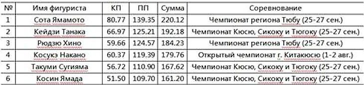 Ямамото выиграл с 3 падениями в произвольной программе, а Танака - с 3 баллами штрафа в короткой, не прыгая четверные. Юниор Тацуя Цубои набрал 199.25 балла на первенстве Тюбу.