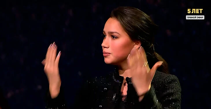 – По ходу эфира мне писала Яна Рудковская: молодец, мы смотрим – поставила кучу сердечек и сказала, что Плющенко оценил на 6 по 5-балльной системе. И я Алине говорю: видишь, Рудковская смотрит. А Алина: не может такого быть, вы меня обманываете. Я показываю ей переписку – и Алина в ответ: ничего себе…