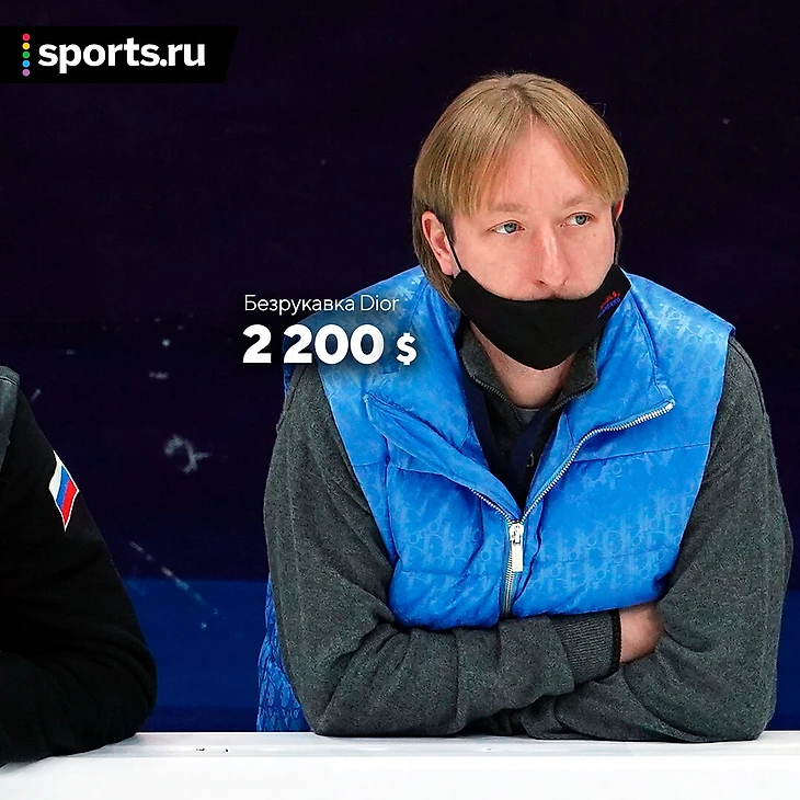 А вот в произвольной программе Евгений предпочел более спортивный, но все еще дорогой образ: серый спортивный костюм и теперь уже синюю безрукавку от Dior за $2,2 тысячи (около 165 тысяч рублей по текущему курсу – Sports.ru).