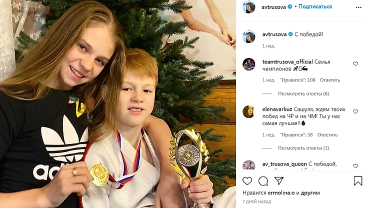 Трусова молчит дольше – с 12 ноября. Лишь неделю назад она возбудилась победой родного брата, в каком виде спорта я не понял, но показала совместное фото с его кубком. То есть налицо доминанта интереса к победам надо всей жизнью. Довольно безрадостно, согласитесь, если ты перестанешь вообще побеждать. Ведь последний пост в Инсте до брата – как раз книга о Сашеньке, о себе любимой, преодолевшей гравитацию планеты земля.