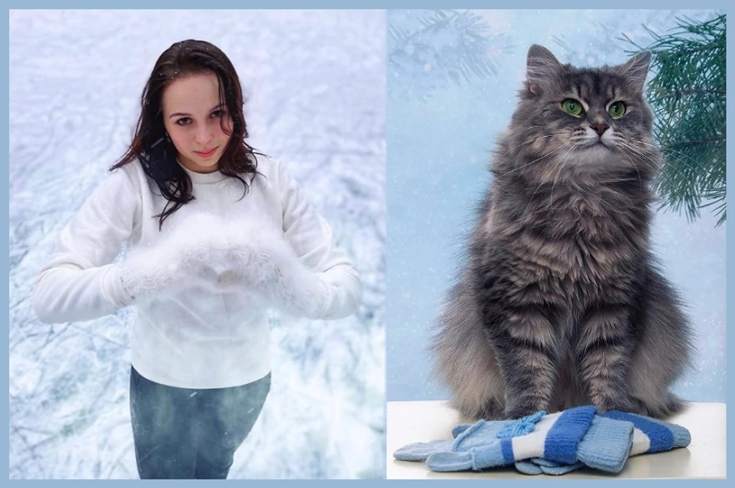 К этому празднику я подготовила большой праздничный пост. Здесь вы увидите новогодние (и просто зимние) коллажи на фигуристов с милыми домашними питомцами.